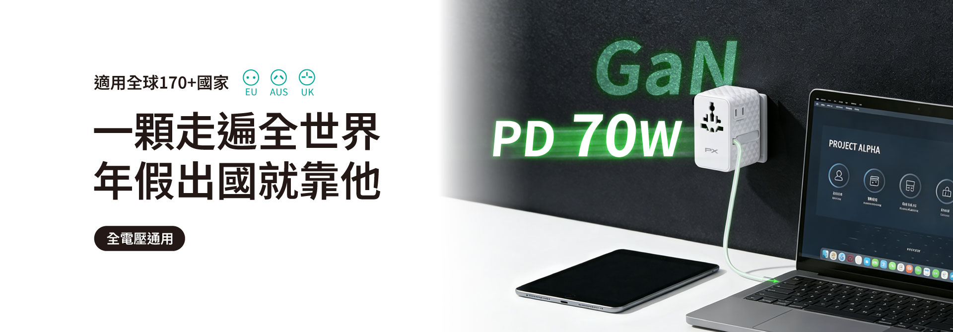 70W瓦 萬國充2A2C 氮化鎵萬國充電器 萬國轉接頭 萬國插頭 Type C+U...