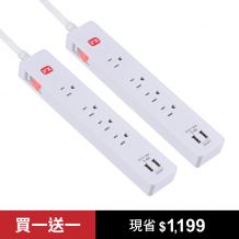 2入組 快充1開4插延長線 2 USB 快充孔 1.2米 4尺(PEC-314U4W)