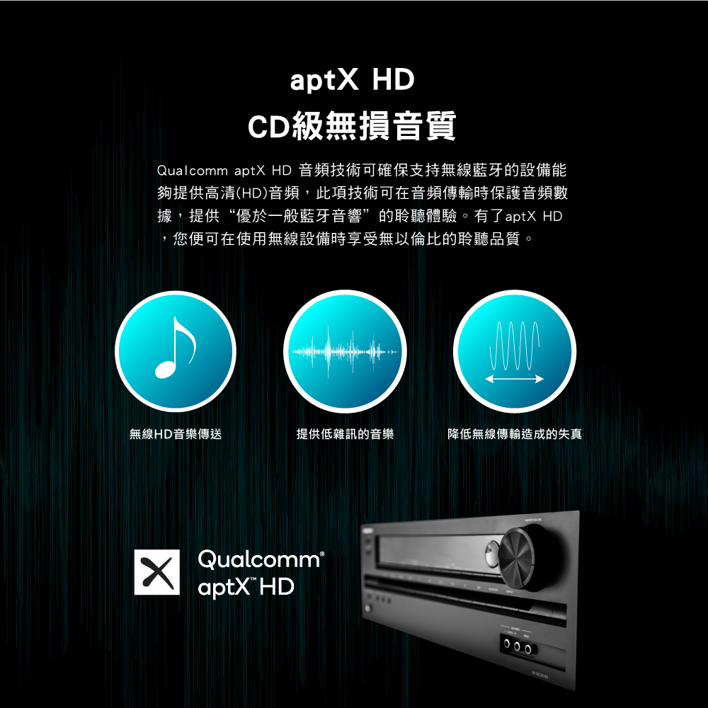 .支援Qualcomm aptX® HD, aptX® Low Latency, aptX® 高效編碼