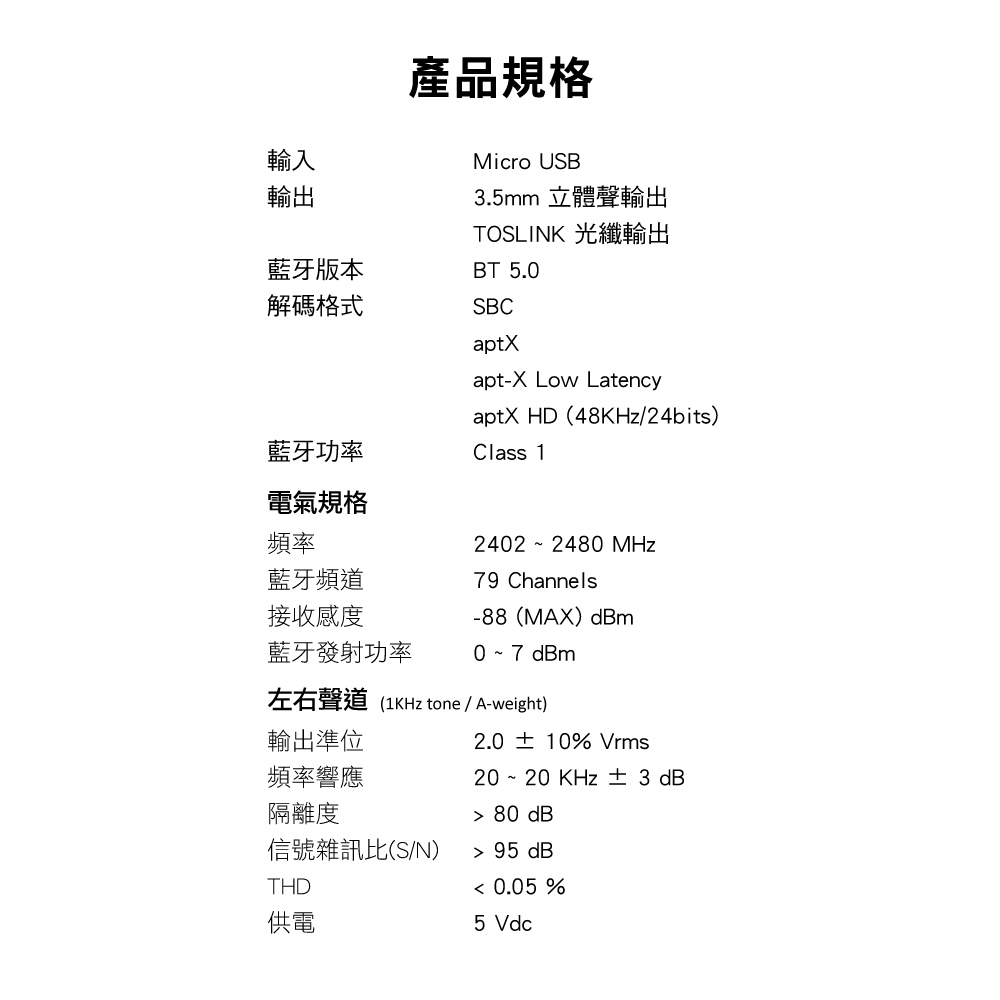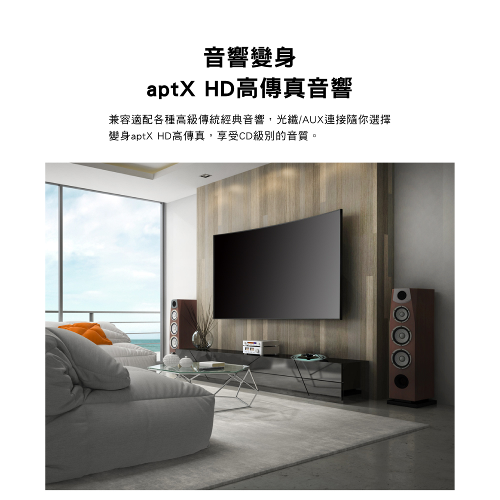. aptX HD 48KHz@24bits 編碼,提供逼真的聲音享受(比直接接線聲音更好)