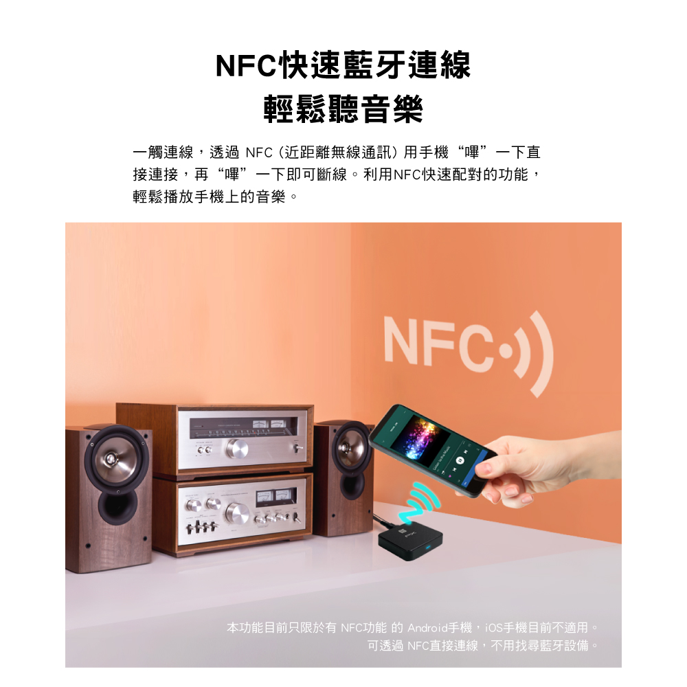 . NFC快速連結:用手機“嗶”一下立刻連線或是斷線,像搭公車捷運一樣,輕輕鬆鬆聽音樂