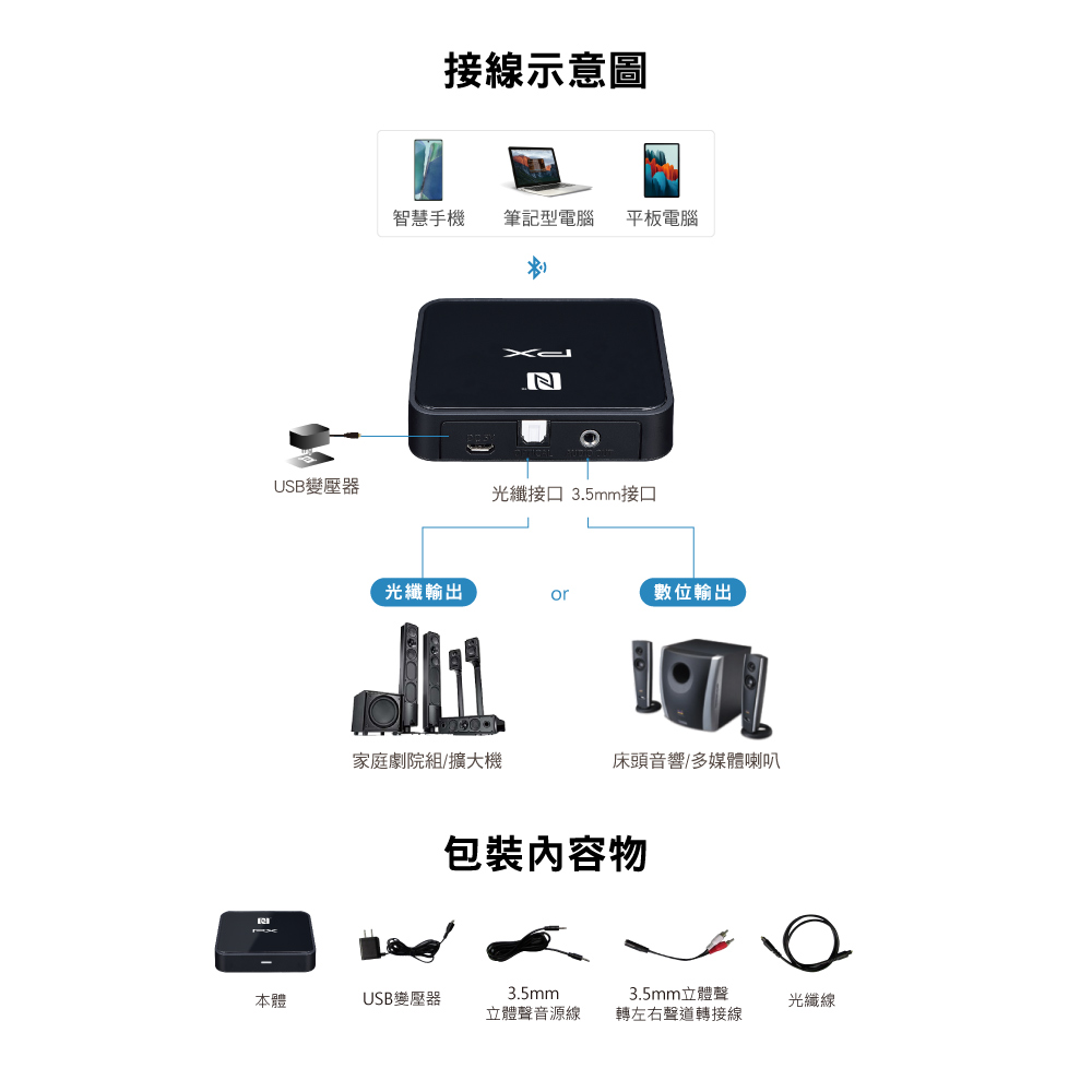 .光纖/左右聲道(3.5mm 立體音)同時輸出