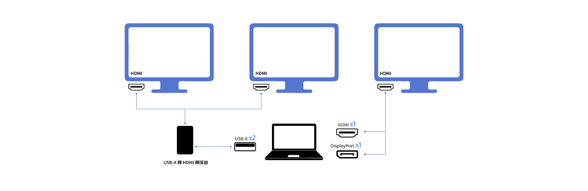 適合筆電沒有 Type-C 或 MST 支援的情況下達成三螢幕顯示。