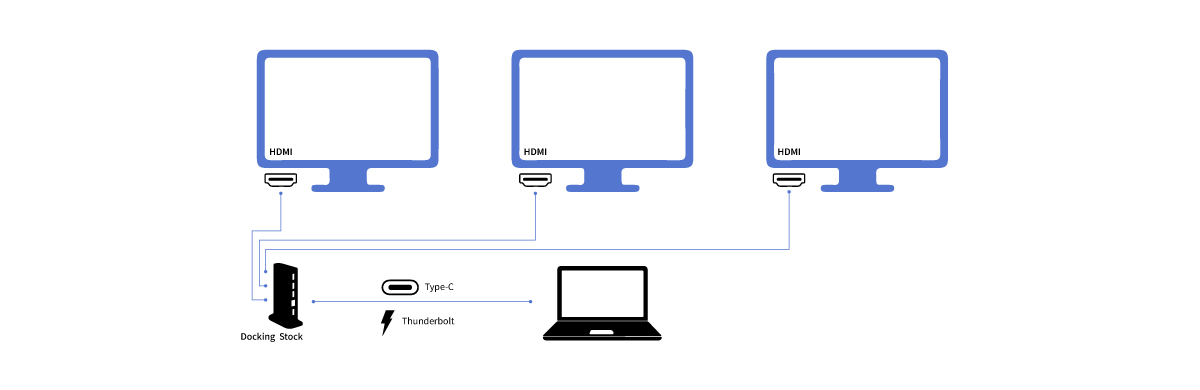 高階 Docking 可透過一條 Type-C 或 Thunderbolt 傳輸線,輸出多組視訊訊號。