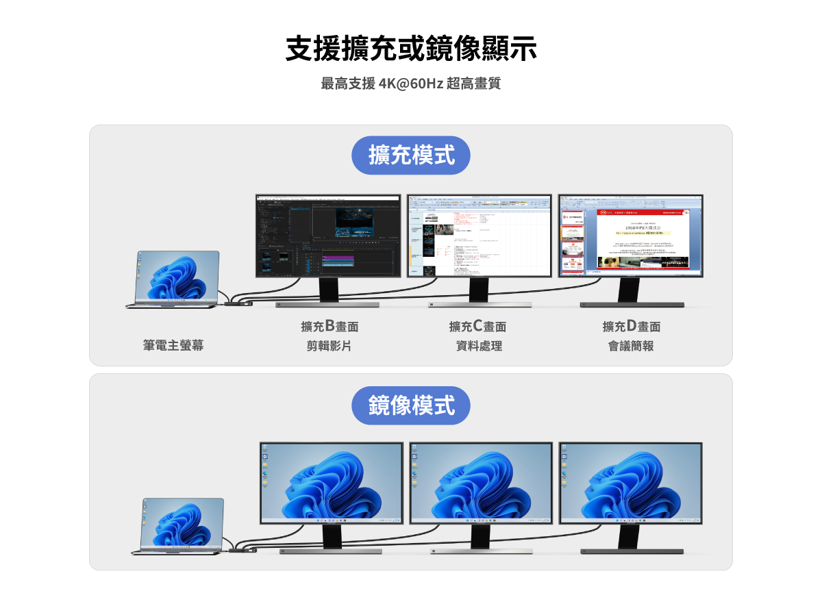 一機即串三螢幕|支援延伸 / 鏡像顯示自由切換