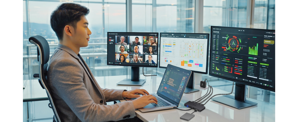 在需要多工操作與資料同步的工作情境中,MST HUB 提供了高效率的畫面分工方式。透過一機串接多螢幕,不僅能減少視窗切換的中斷成本,也讓各類任務能在獨立螢幕上同步進行。以下為常見的實際應用場景: