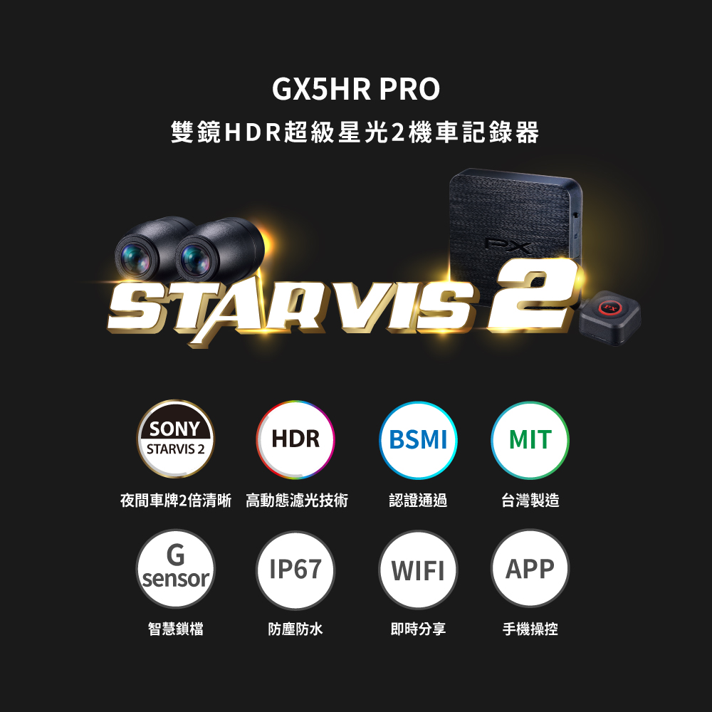 SONY STARVIS 2代 星光夜視1080P HDR機車行車記錄器WIFI 行車紀錄器 SONY前後雙鏡頭 台灣製造 送32G記憶卡 (GX5 HR PRO)