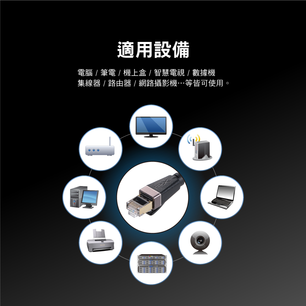 -電腦 / 筆電 / 機上盒 / 智慧電視 / 數據機 集線器 / 路由器 / 網路攝影機…等皆可使用。