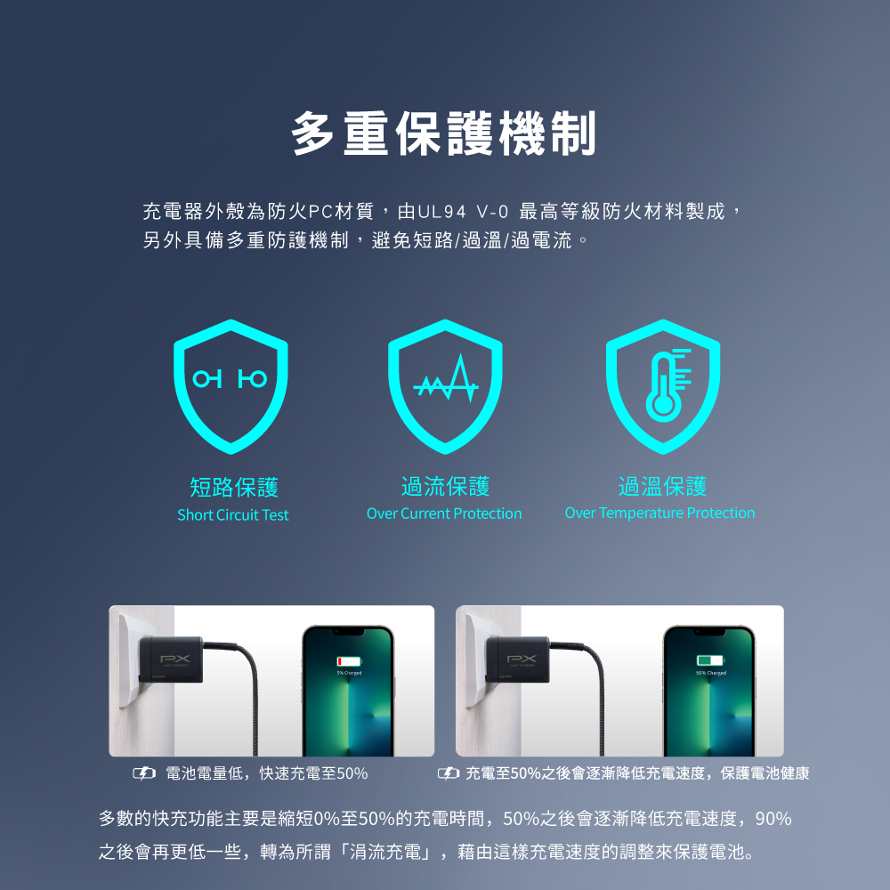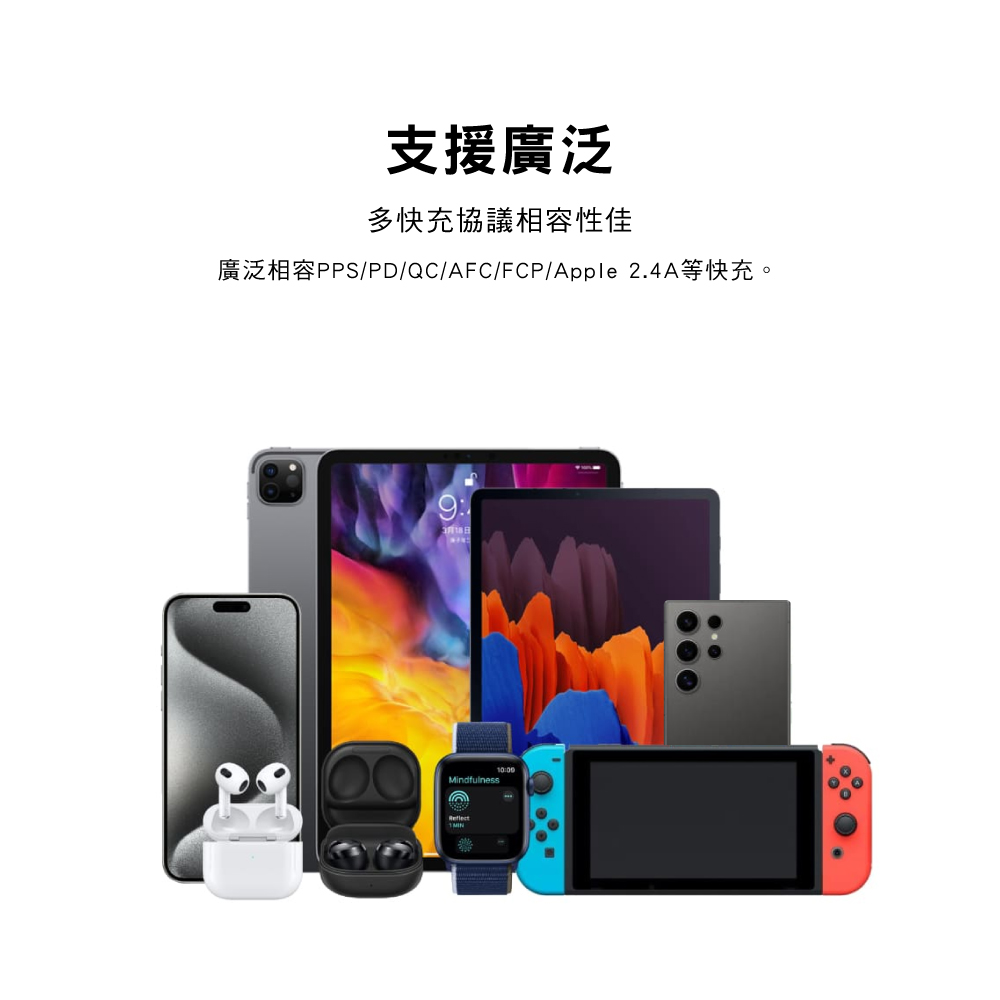 ‧廣泛兼容PPS/PD/QC/AFC/FCP/Apple 2.4A等