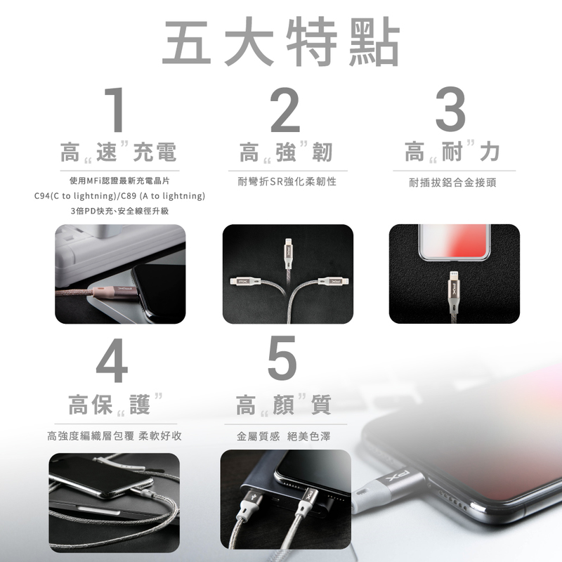 •22AWG線徑升級,高純度銅導體,大電流充電更高效率