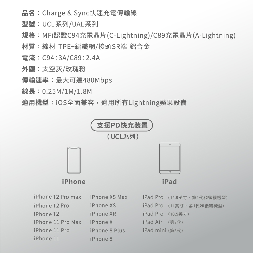 •適用8 Pin Lightning介面蘋果手機、平板