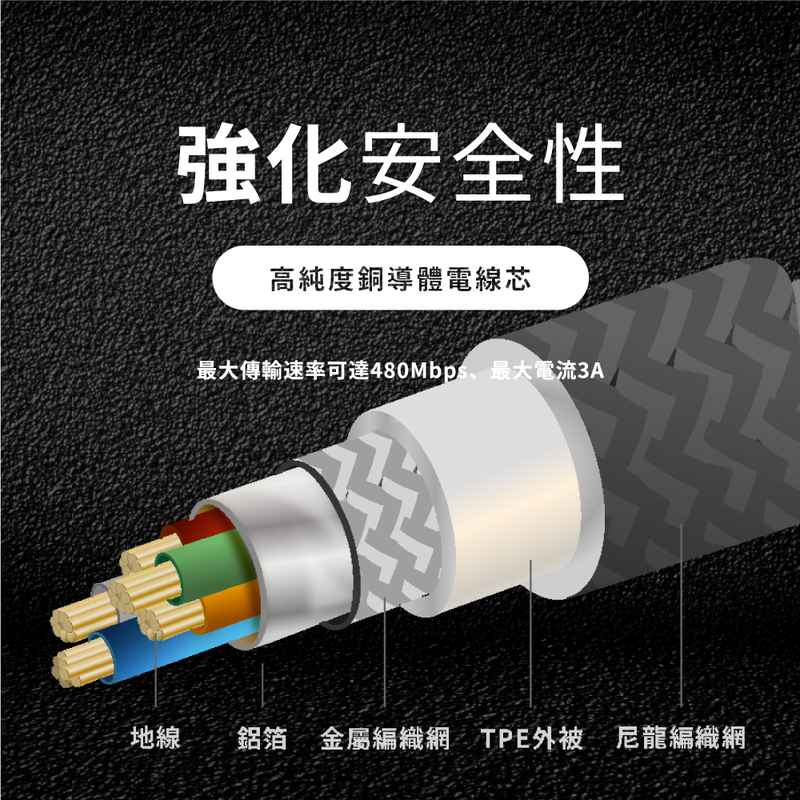 •22AWG線徑升級,高純度銅導體,大電流充電更高效率