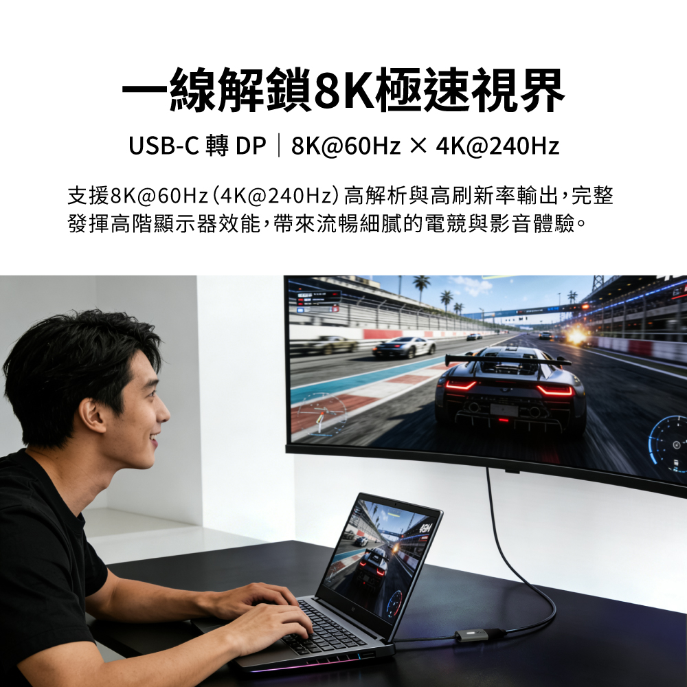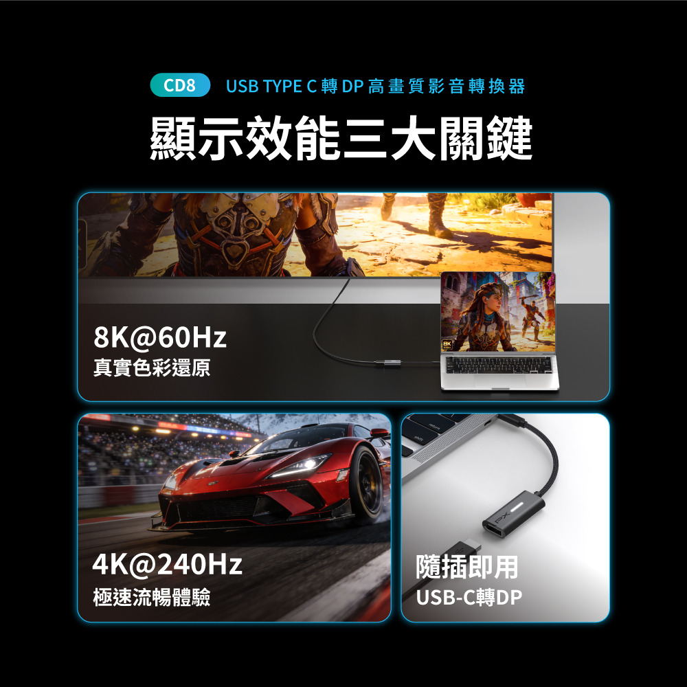 8K@60 4K@240 Type-C to DP HUB集線器 影音轉接器 手機筆電投影大螢幕 (CD8)