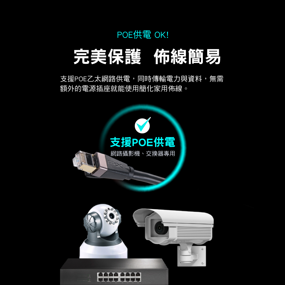 -支援POE乙太網路供電,同時傳輸電力與資料,無需額外的電源插座就能使用簡化家用佈線。