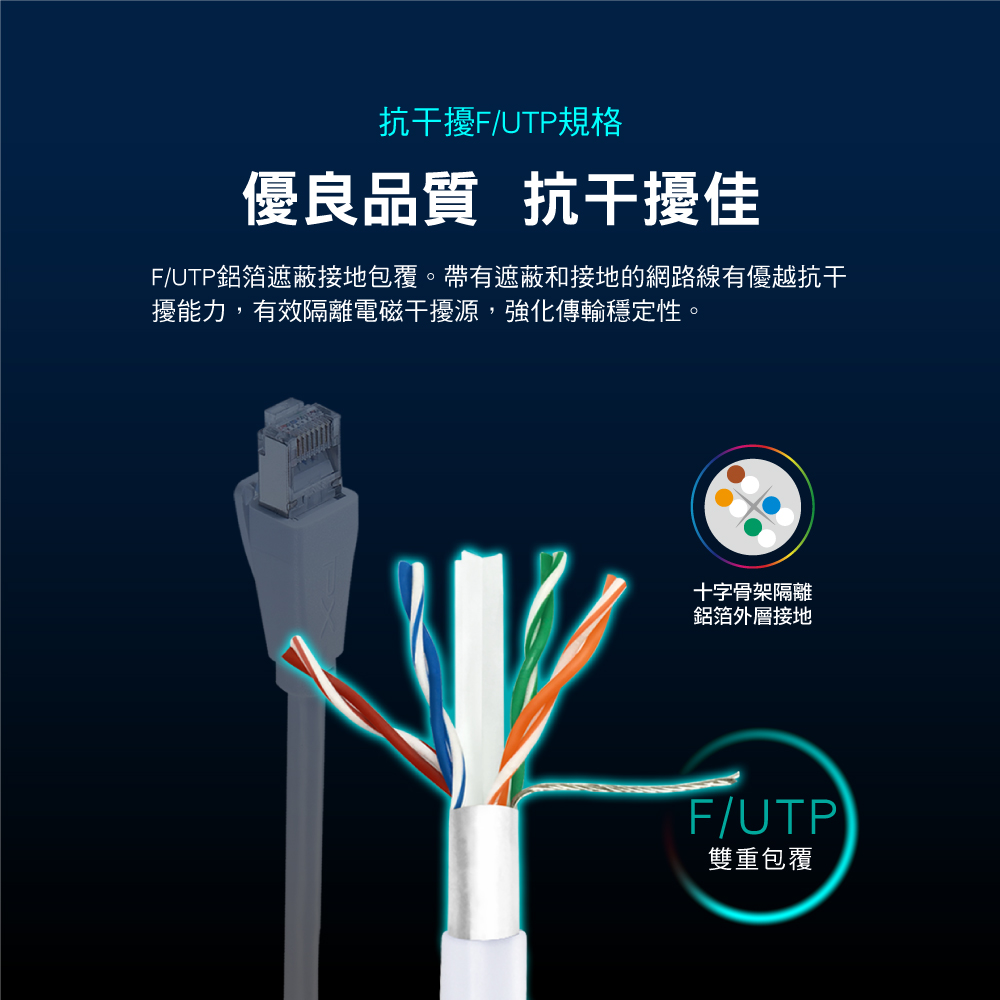 -抗干擾F/UTP規格,傳輸穩定