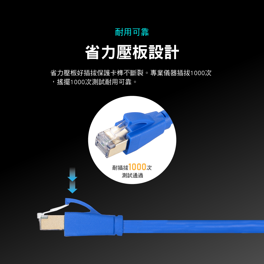 -省力壓板好插拔保護卡榫不斷裂。專業儀器插拔1000次,搖擺1000次測試耐用可靠。