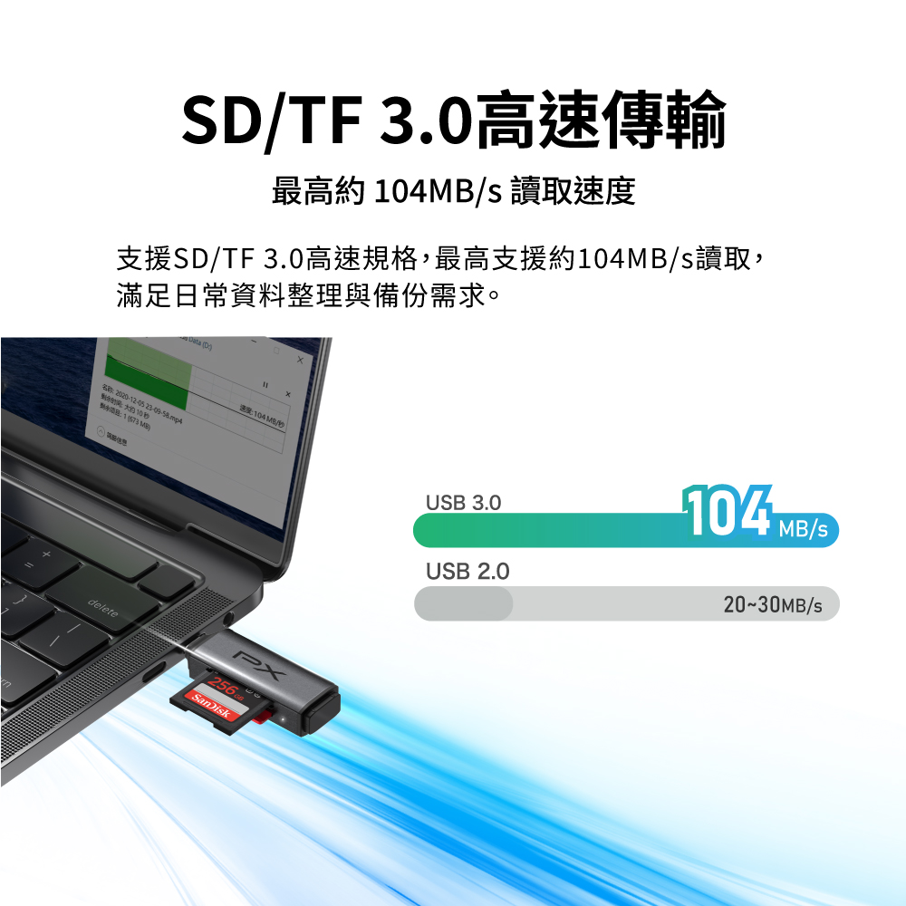 ●SD 與 TF支援104 MB/s傳輸速度,照片、影片備份更省時間