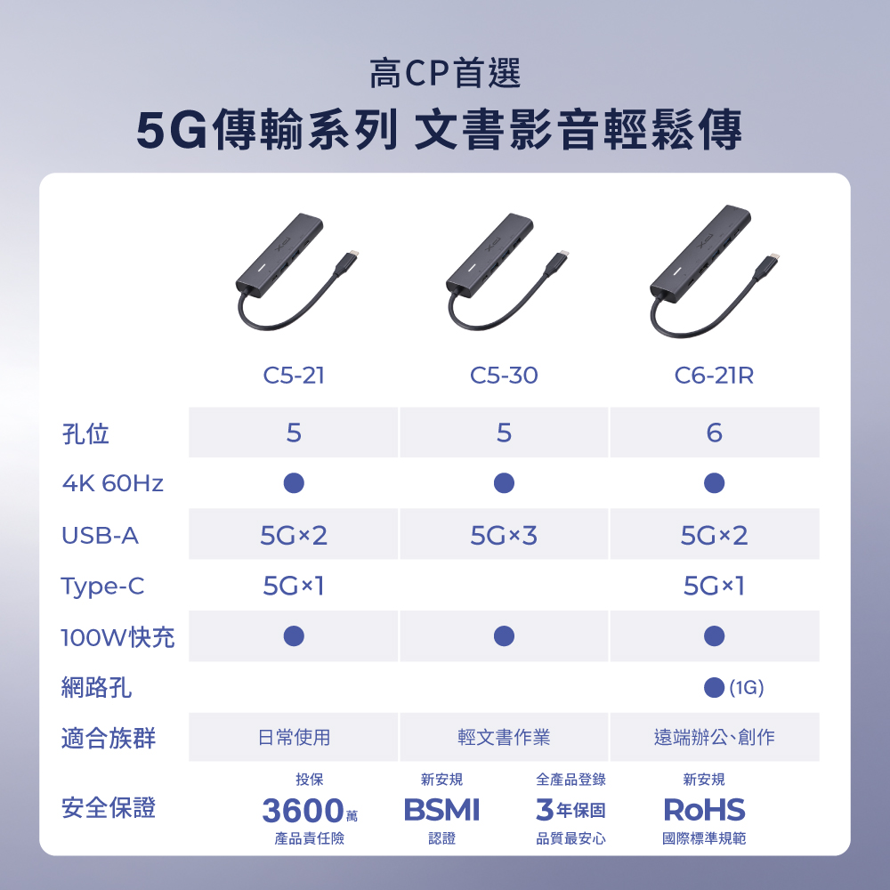 3.USB-C*1 5G高速傳輸(支援5W充電)