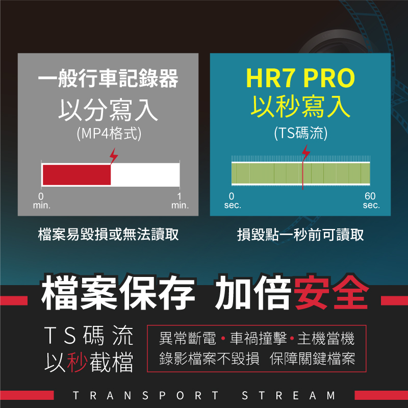 2.TS碼流存檔機制>>以秒截檔設計,不正常斷電、車禍撞擊,錄影檔案不毀損
