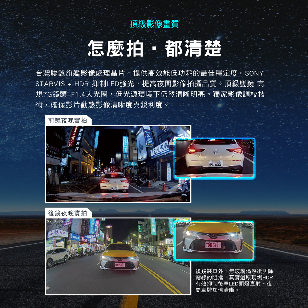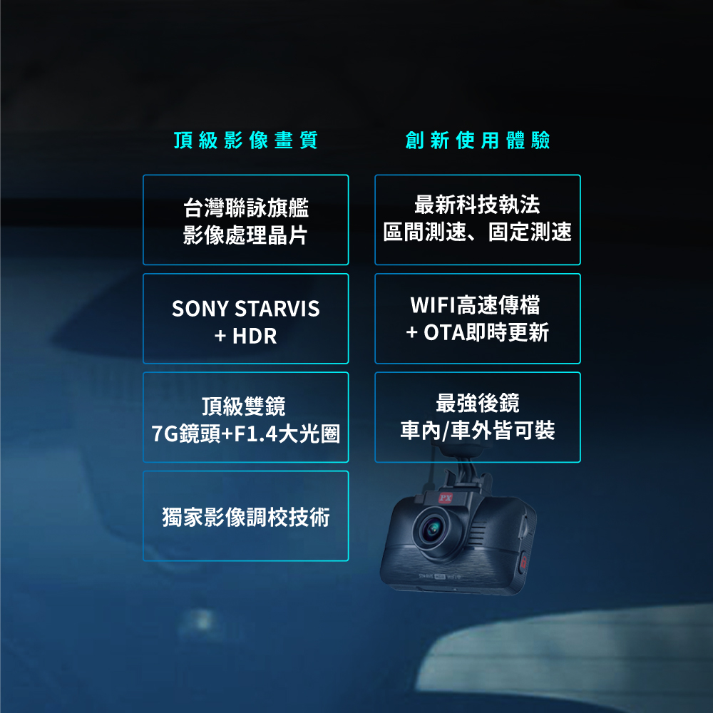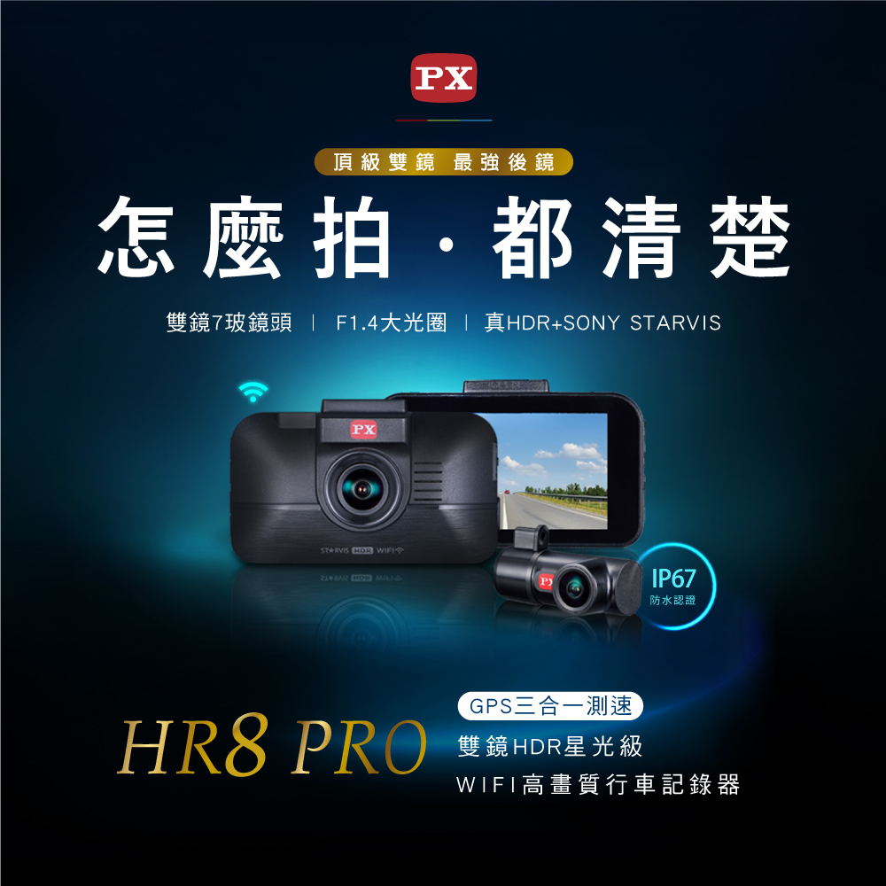 送到府安裝 雙鏡 SONY STARVIS HDR WiFi 高畫質行車記錄器 GPS 三合一測速 F1.4大光圈 防水後鏡 送64G卡 (HR8 PRO)
