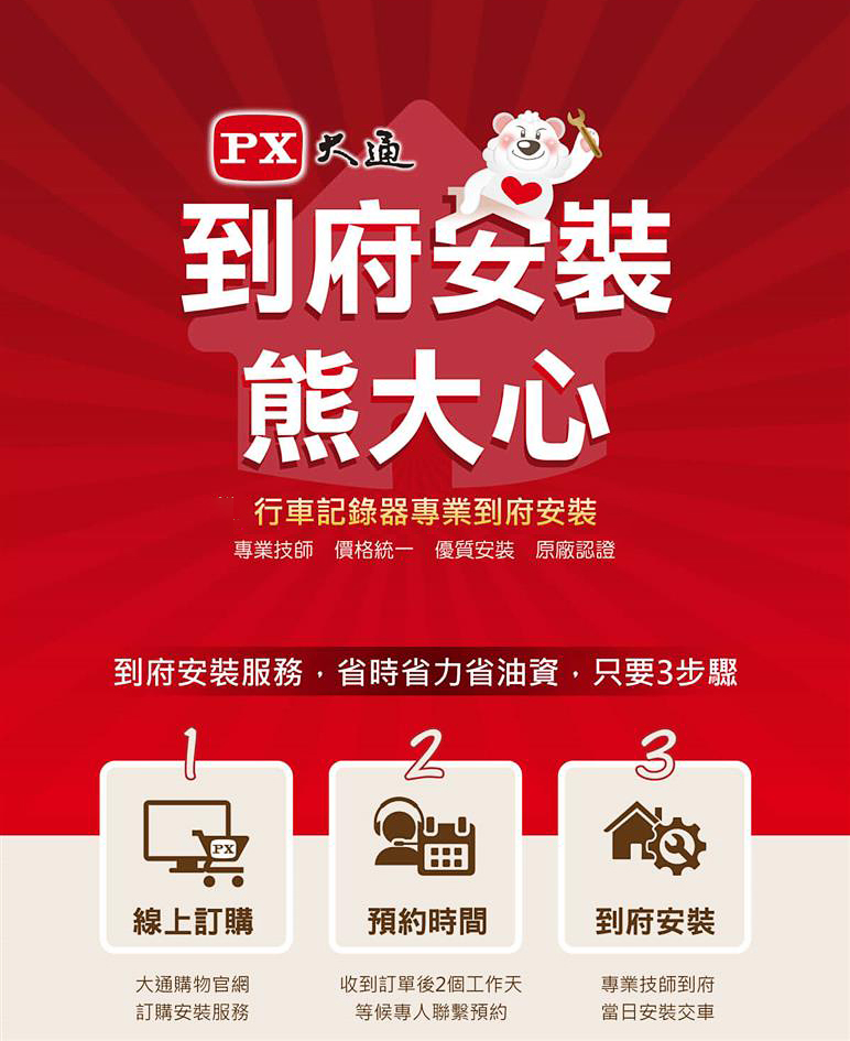 - 2. 本頁面之安裝服務,為標準安裝,限安裝大通品牌之汽車行車記錄器/機車行車記錄器商品(非大通商品不適用)