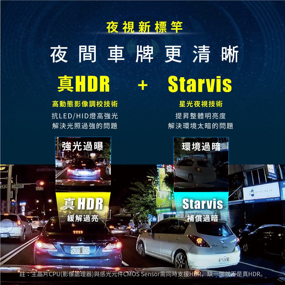 1. HDR高動態錄影+SONY STARVIS星光夜視技術>>抗LED強光、夜間車牌清晰