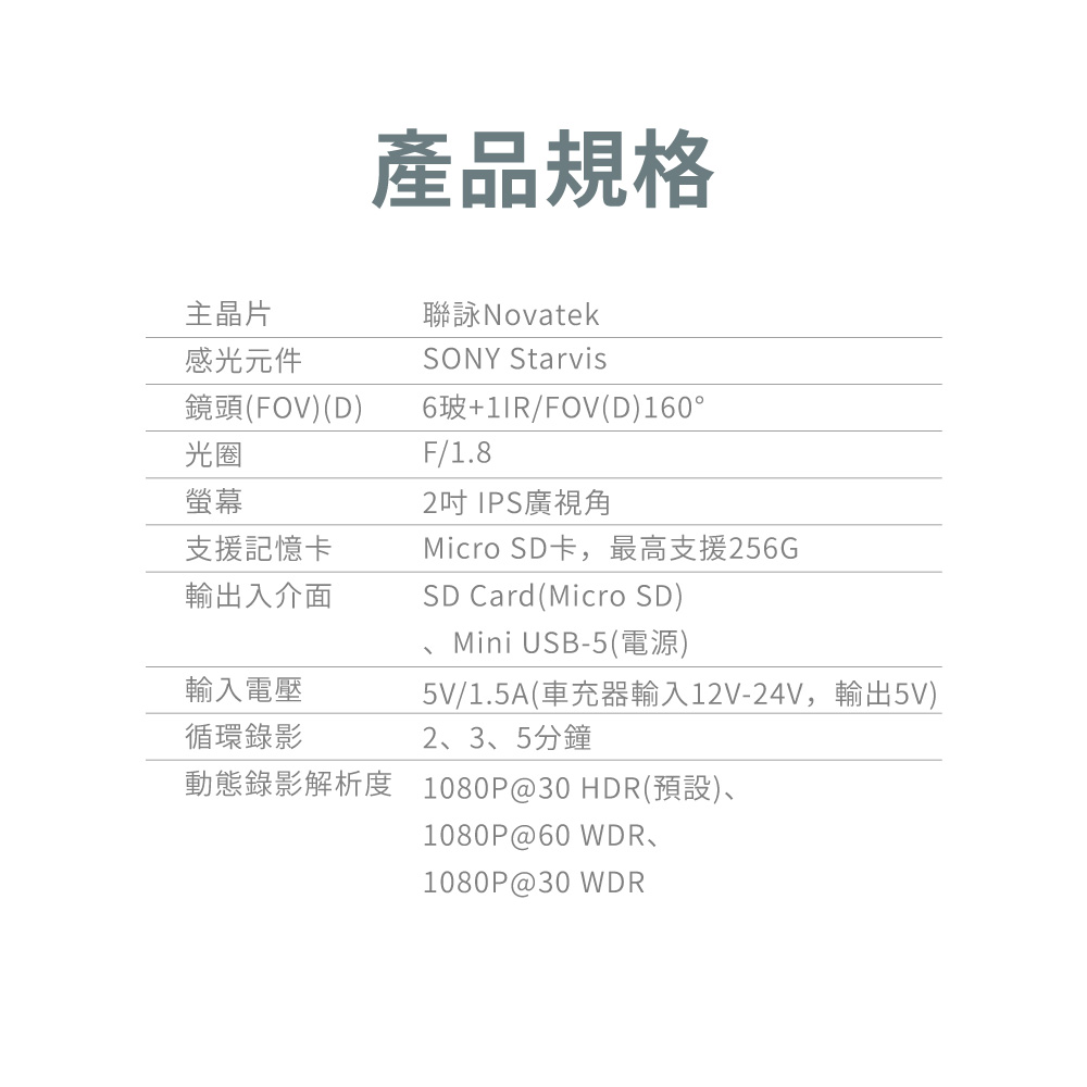 *動態錄影解析度:1080P@30 HDR(預設)、1080P@60 WDR、1080P@30 WDR