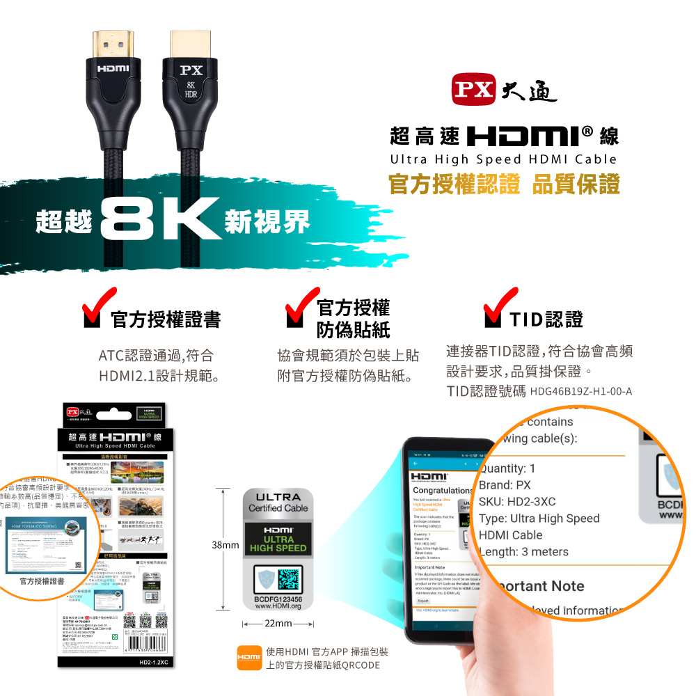 【PX大通】HD2-3XC 8K認證 3公尺超高速HDMI線 高畫質影音傳輸線(10K@120超高解析/超高畫質)