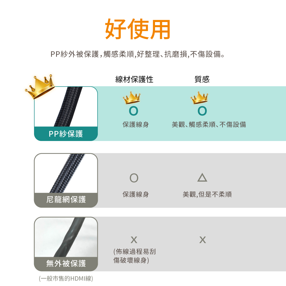 *更耐用 :插頭鍍金設計,傳輸系數高(品質穩定)、不易氧化,使用壽命長