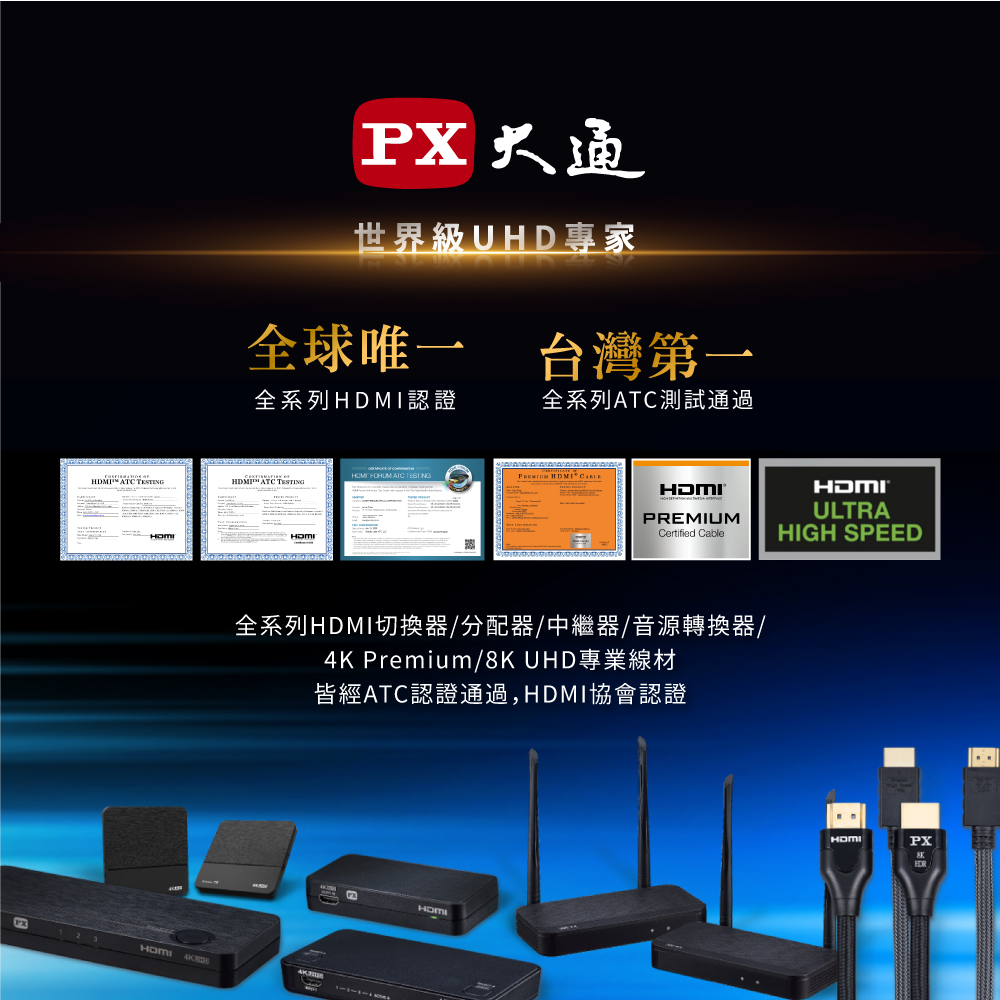 全系列切換器/分配器/中繼器/音源轉換器/4K PREMIUM線/8K UHD線,皆經ATC認證通過,HDMI協會認證