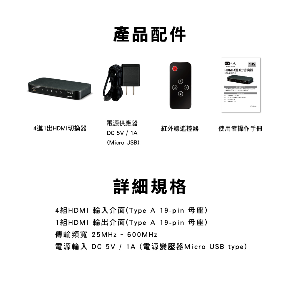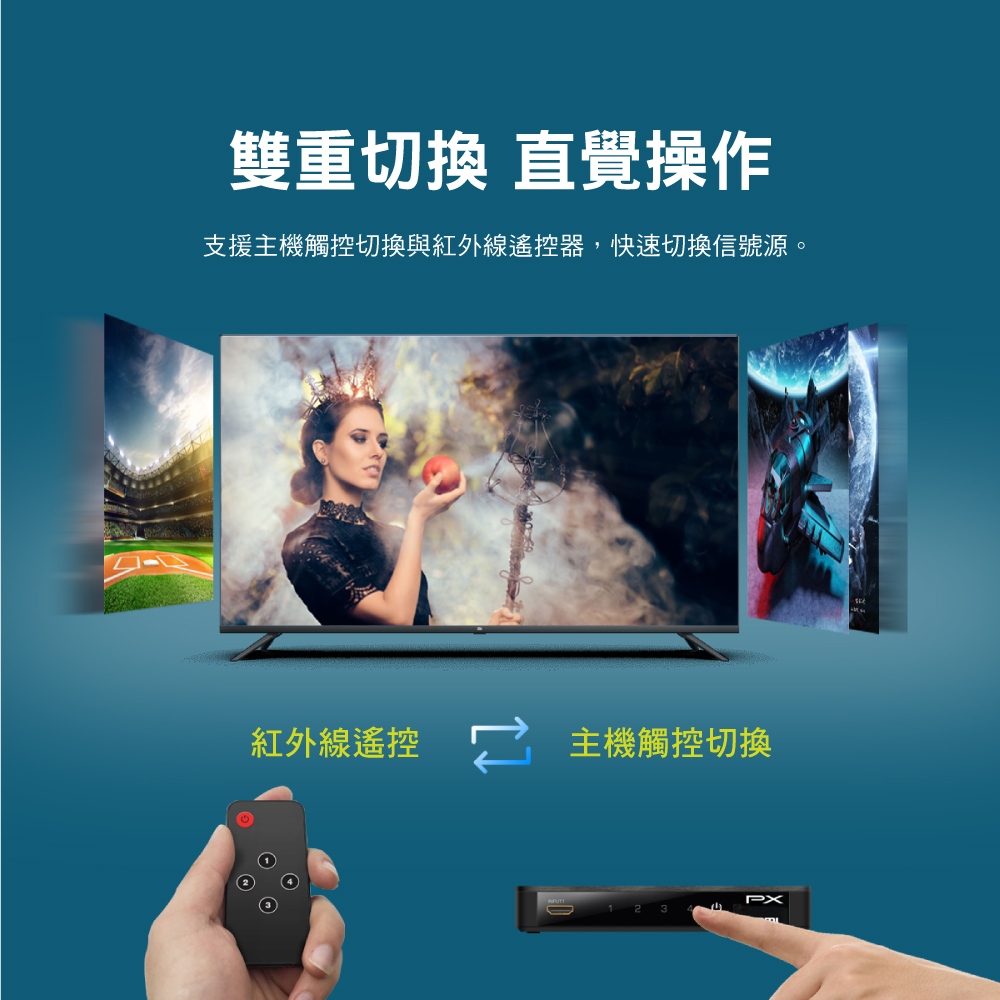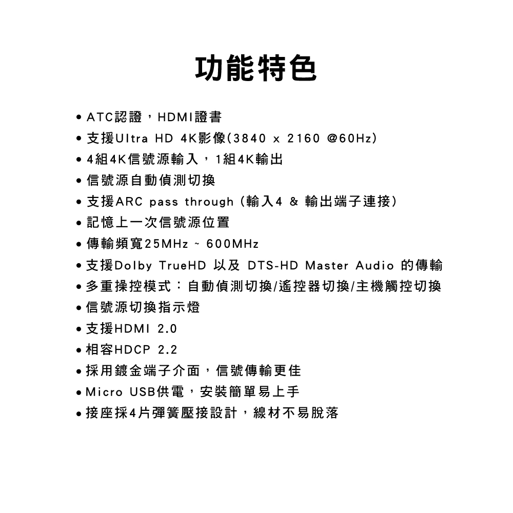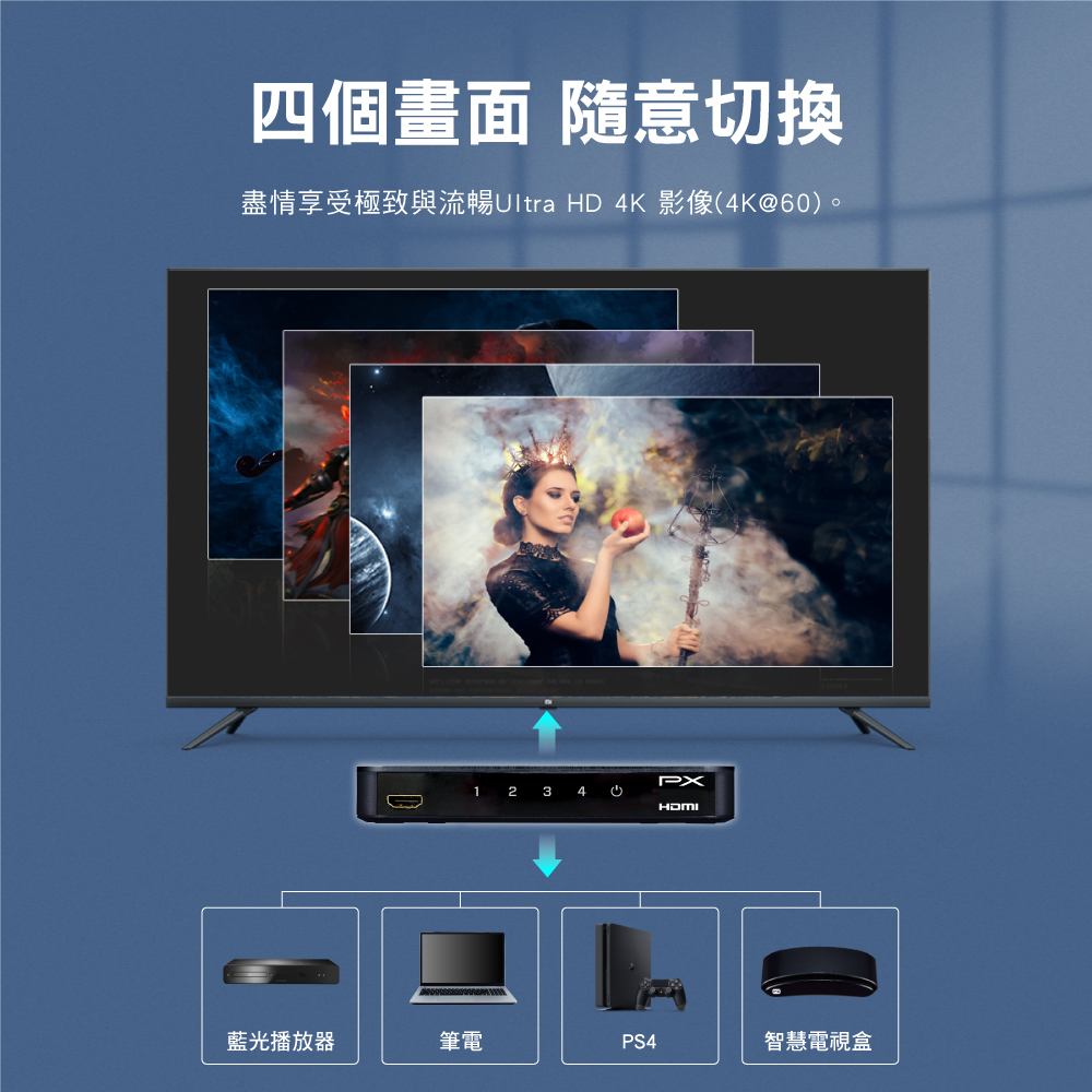 *4組4K信號源輸入,1組4K信號源輸出,擴充電視HDMI介面