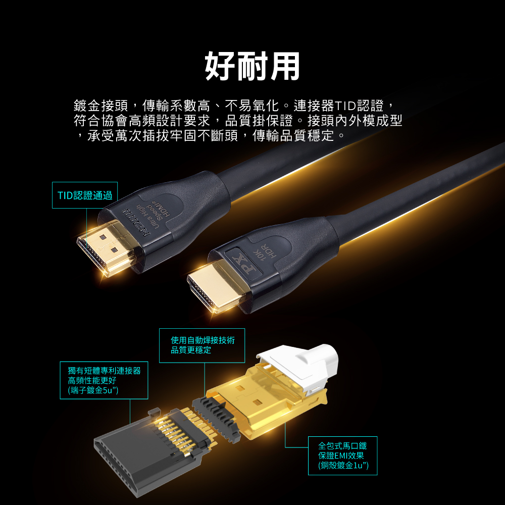 *更耐用 :插頭鍍金設計,傳輸系數高(品質穩定)、不易氧化,使用壽命長
