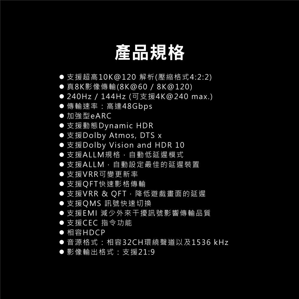 *ATC認證通過,完全符合協會HDMI 2.1版設計規範