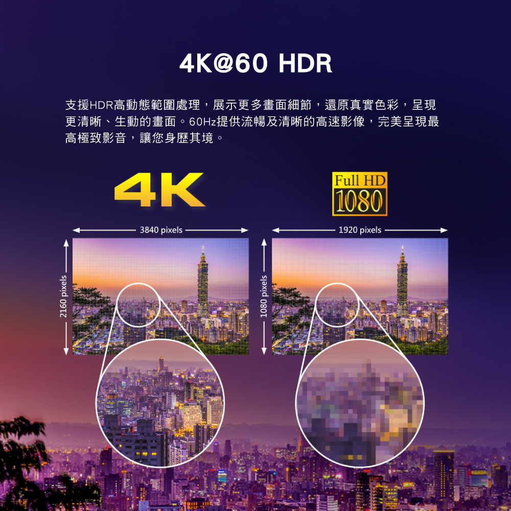 。超高畫質:手機、平板與HDMI設備,4K@HDR高畫質輸出
