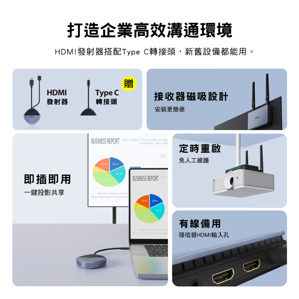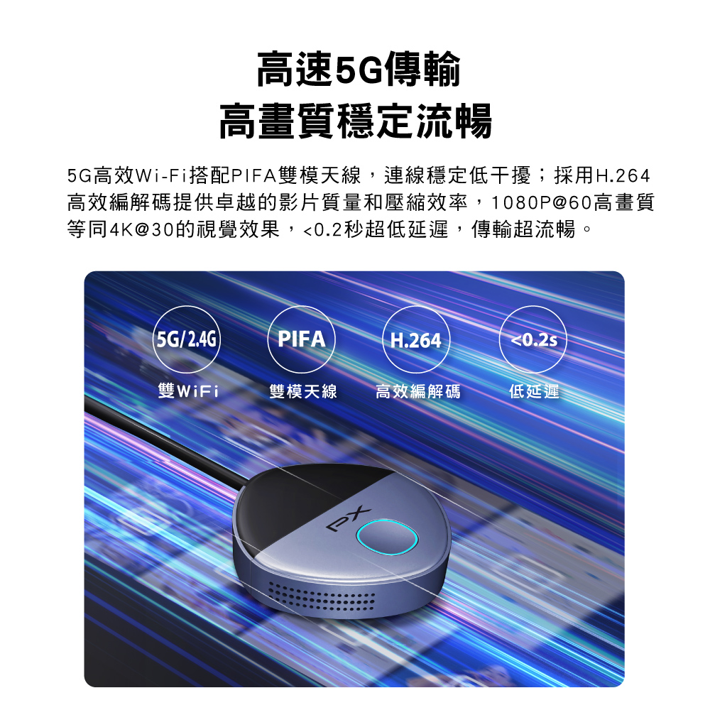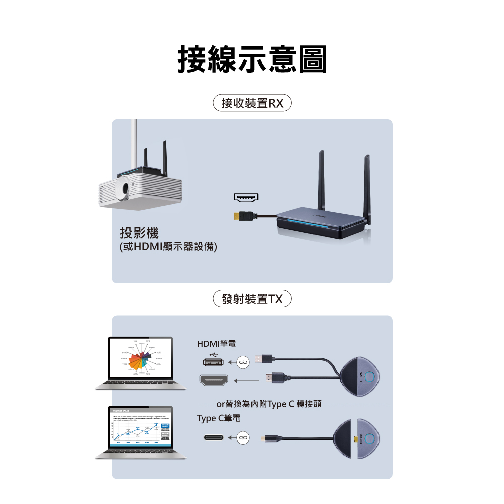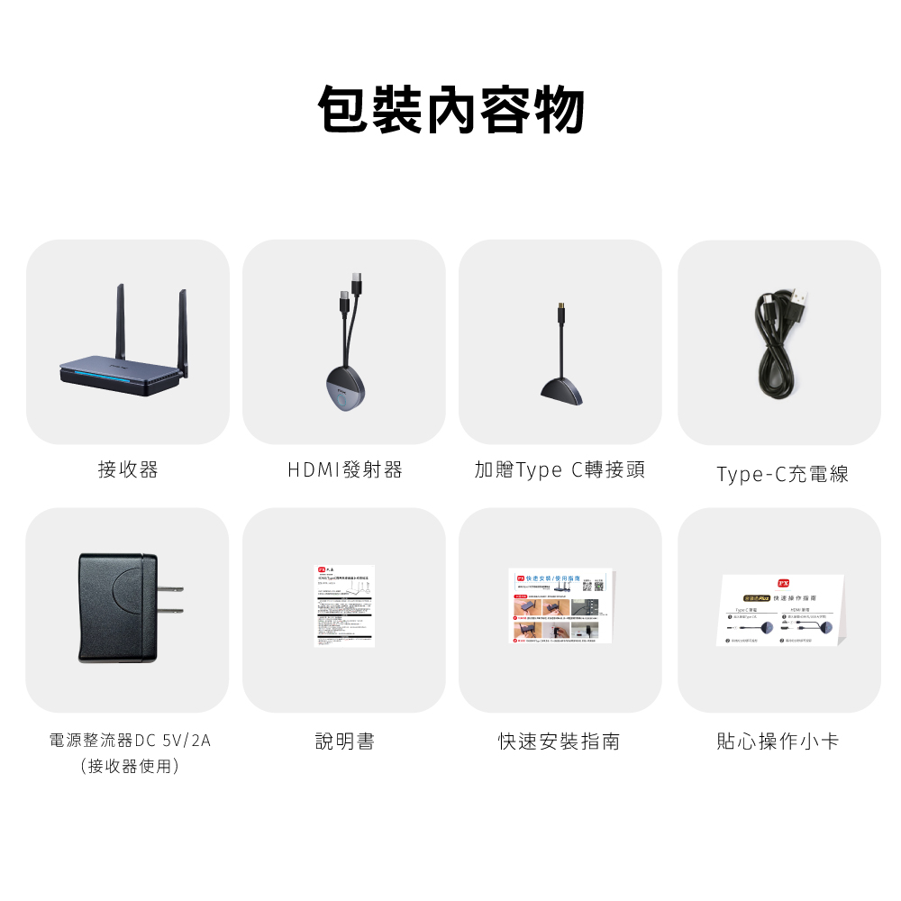 HDMI Type C 雙介面無線投影 會議投影 即插即用免安裝 手機筆電投影大螢幕 100米 5G(WTR-5601H)