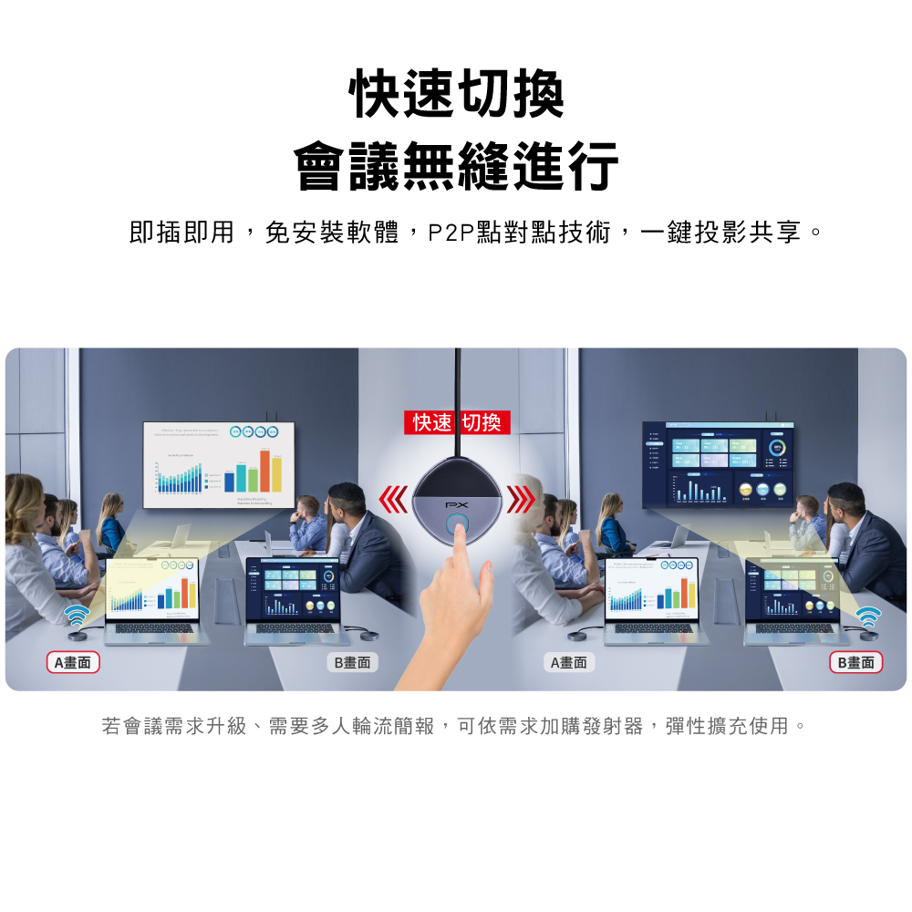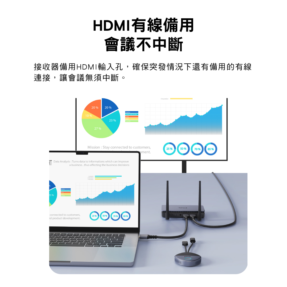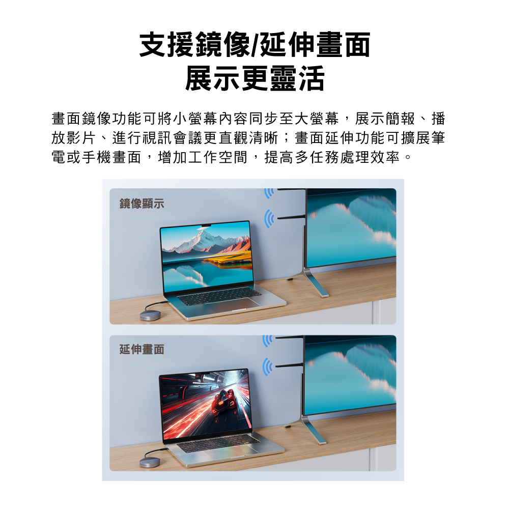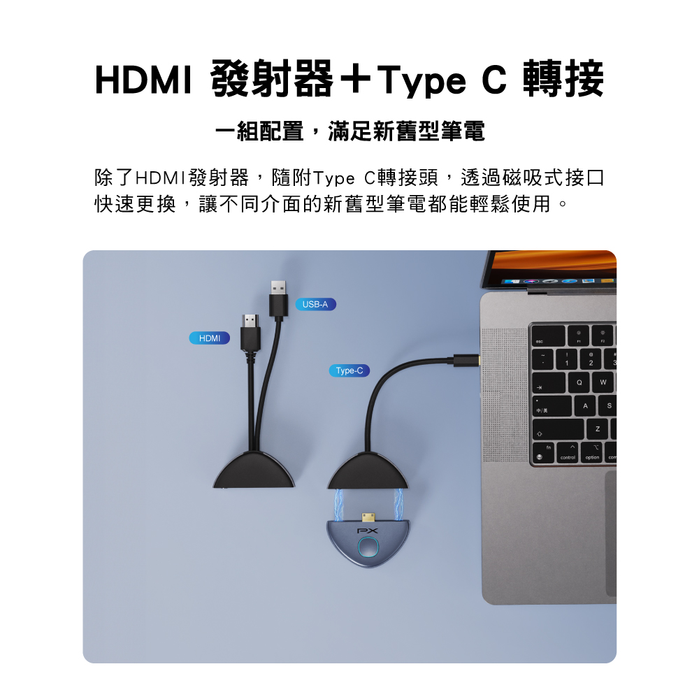 HDMI Type C 雙介面無線投影 會議投影 即插即用免安裝 手機筆電投影大螢幕 100米 5G(WTR-5601H)