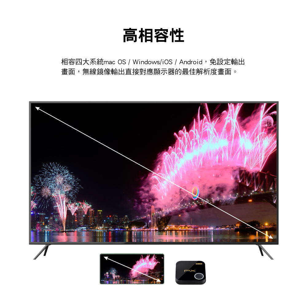 -高相容性:無線鏡像輸出,免設定,相容4大系統