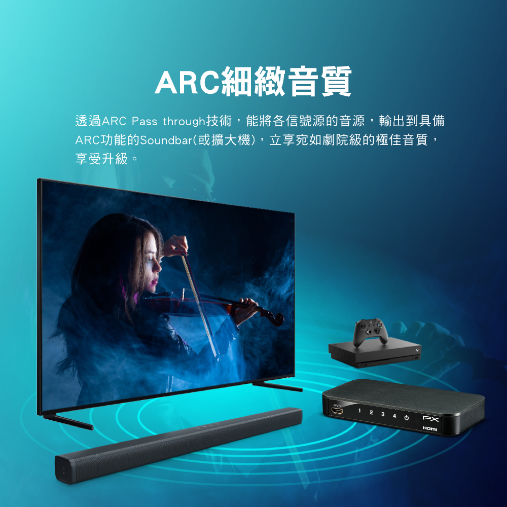 【PX大通】HD2-410ARC HDMI四進一出(4進1出)切換器/居家防疫辦公上班上課