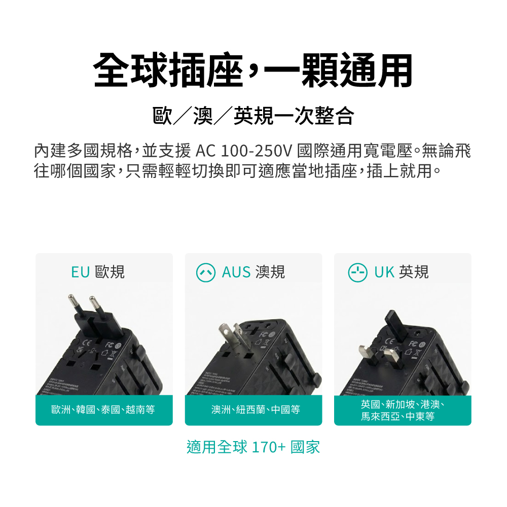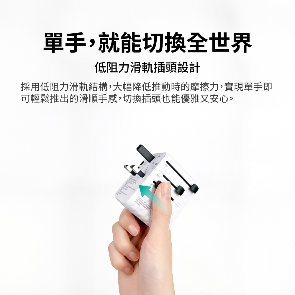 l 安全切換插頭,避免孩童同時使用多國插頭造成短路風險