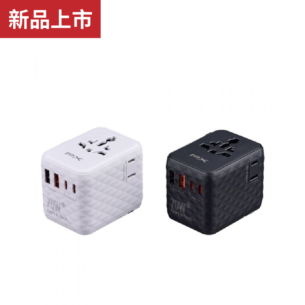 PX大通 70W瓦萬國轉接頭2C2A 氮化鎵萬國插頭 Type C+USB A 旅行轉接插座 旅遊充電必備(WTA-7022W/B)