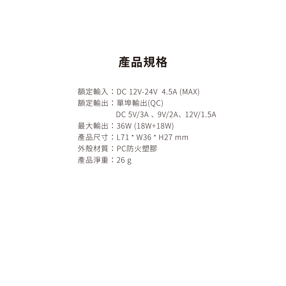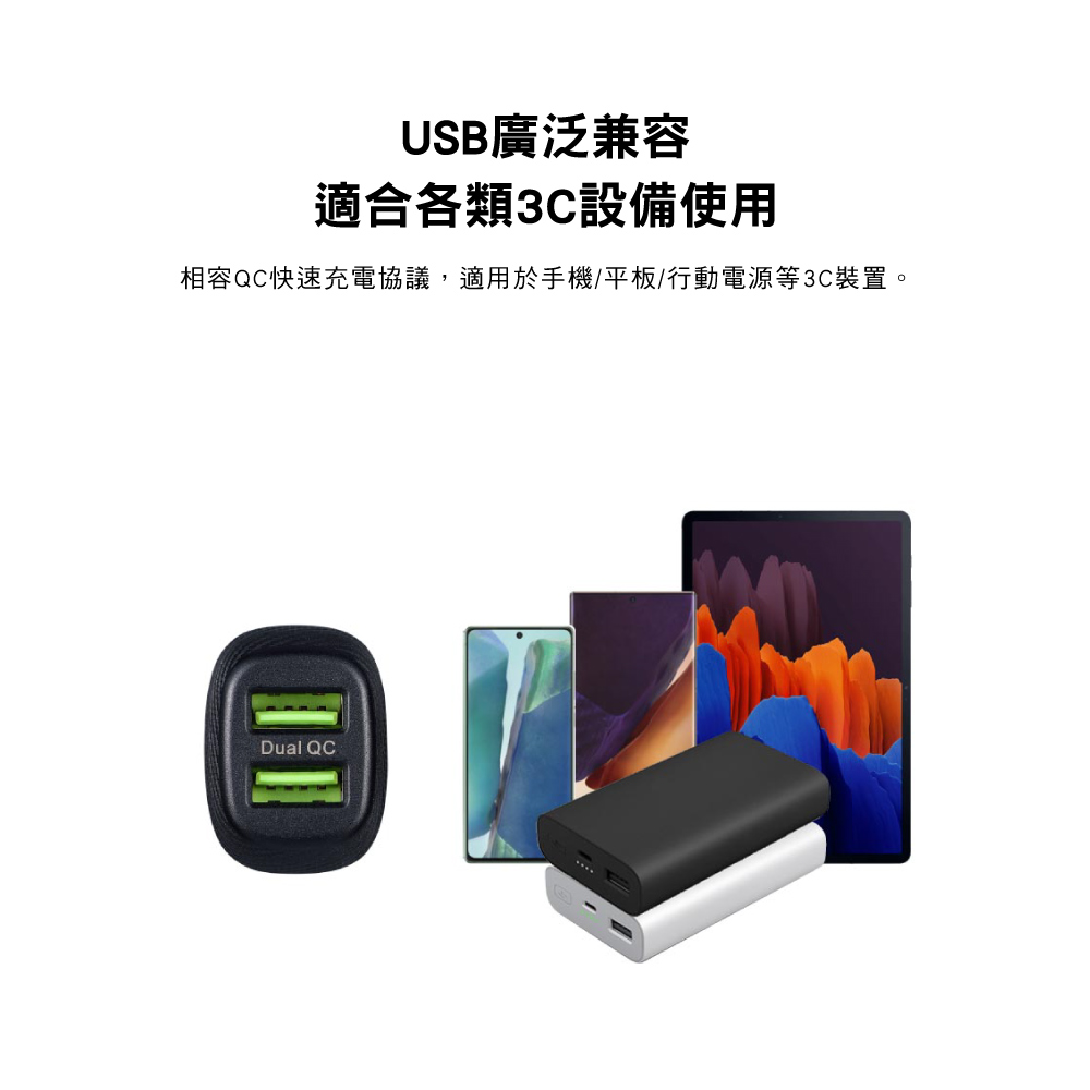 ‧雙埠18W QC快充輸出,高效率充電 (合計36W)