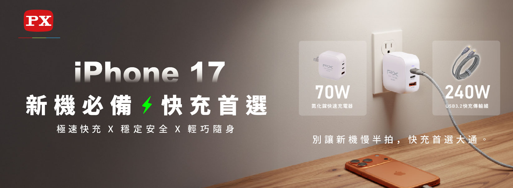 70W 氮化鎵快充充電器 2C1A GaN氮化鎵 PD3.0 QC 3.0 多協議支援 iPhone17首選 (PWC-7012W/B)