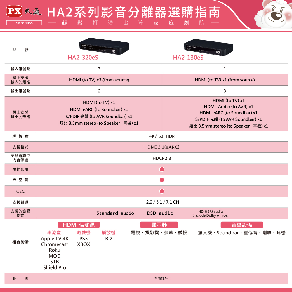 . 支援Dolby Atmos, DTS HD, Dolby TrueHD