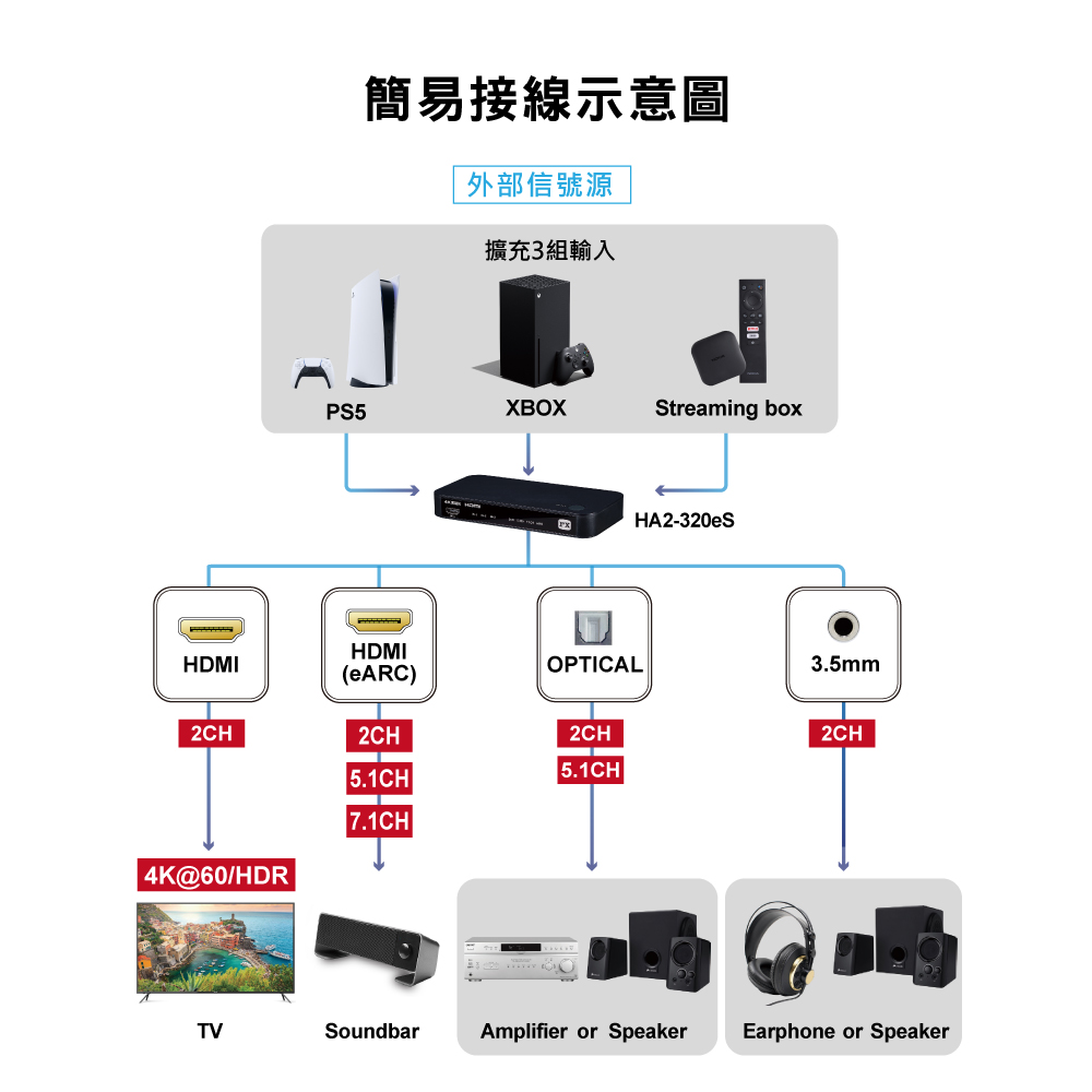 . 支援eARC 自動偵測切換