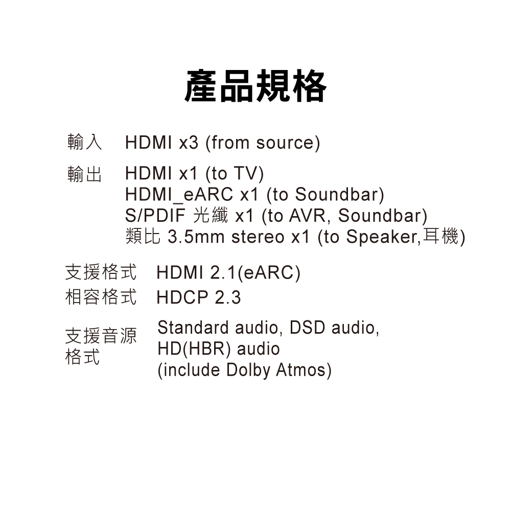 支援格式:HDMI 2.1(eARC)