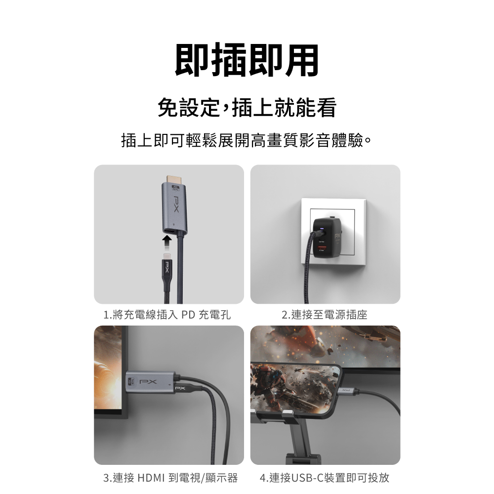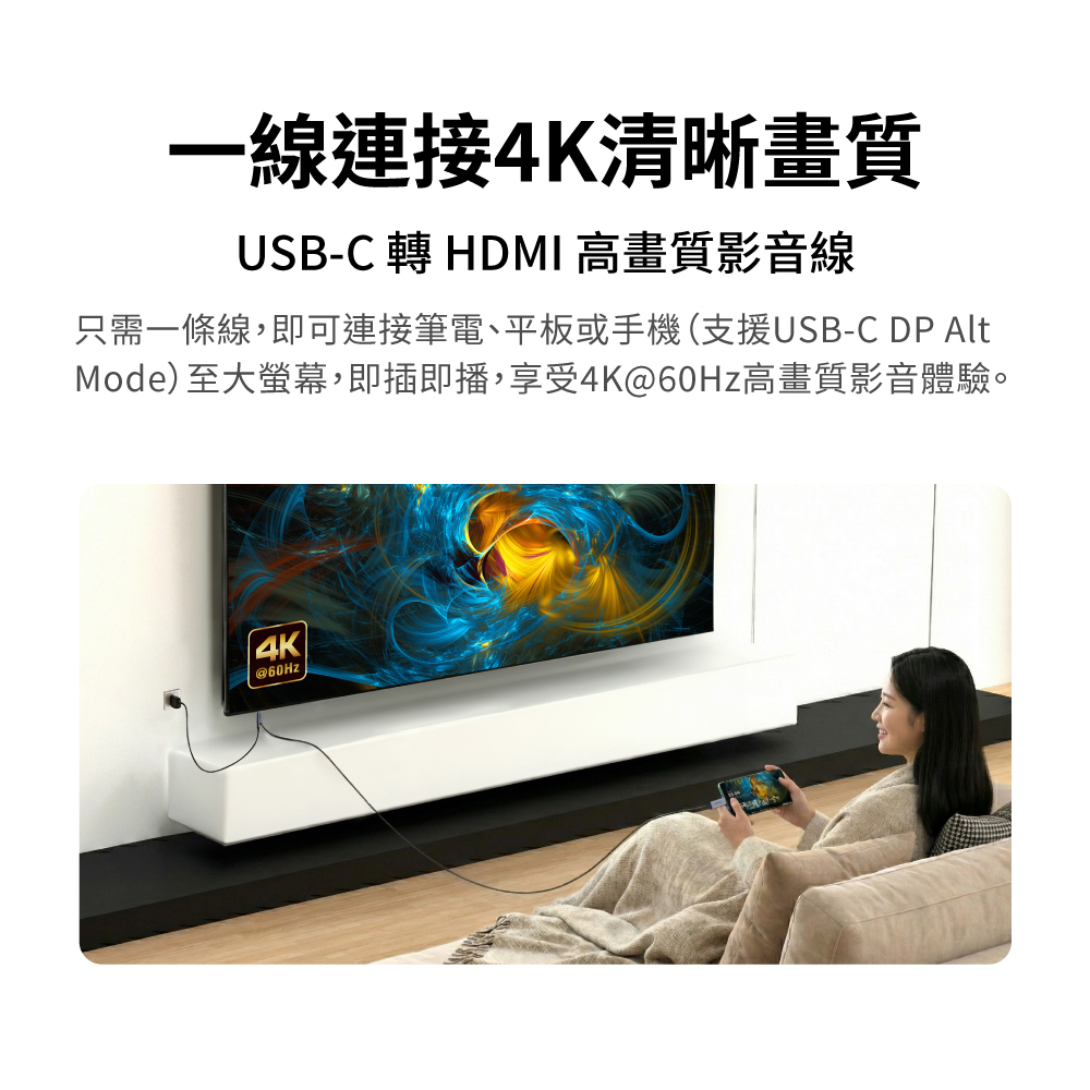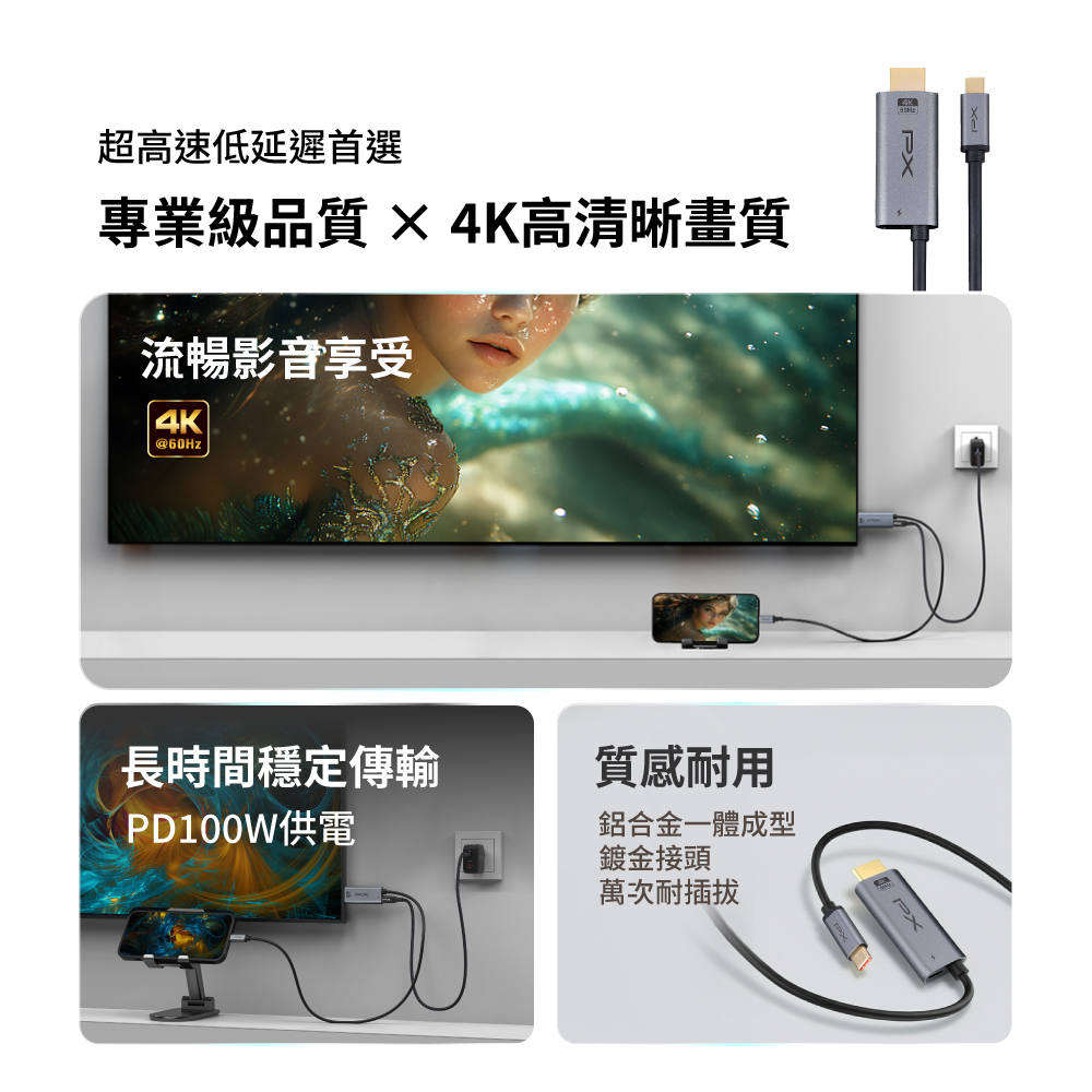 4K手機同屏線 Type C to HDMI PD快充 4K@60高畫質影音轉換線 手機轉電視 1米/2米 (MHC-100C/MHC-200C)