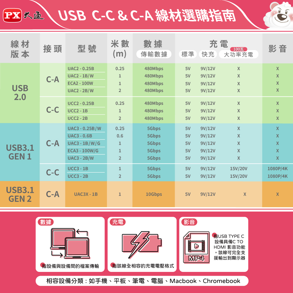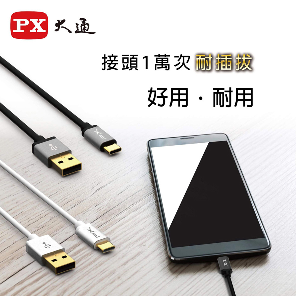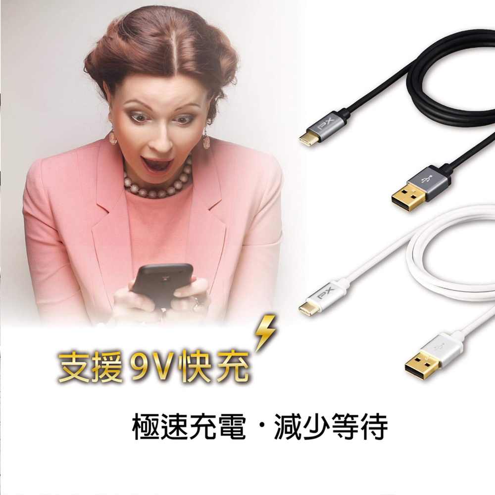 【PX大通】ECA2-100W 1公尺(1米/100公分)/白色TYPE C手機充電傳輸線USB 2.0 A to C(5V@3A充電/9V快速充電)