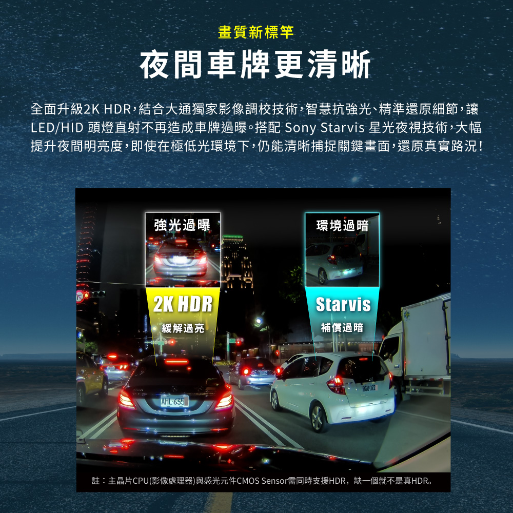 1.HDR高動態錄影+SONY STARVIS星光夜視技術>>抗LED強光、夜間車牌清晰